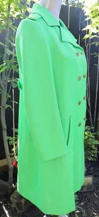 lovely green coat. 60's style. There is a tiny stain in the front. Barely visible though.